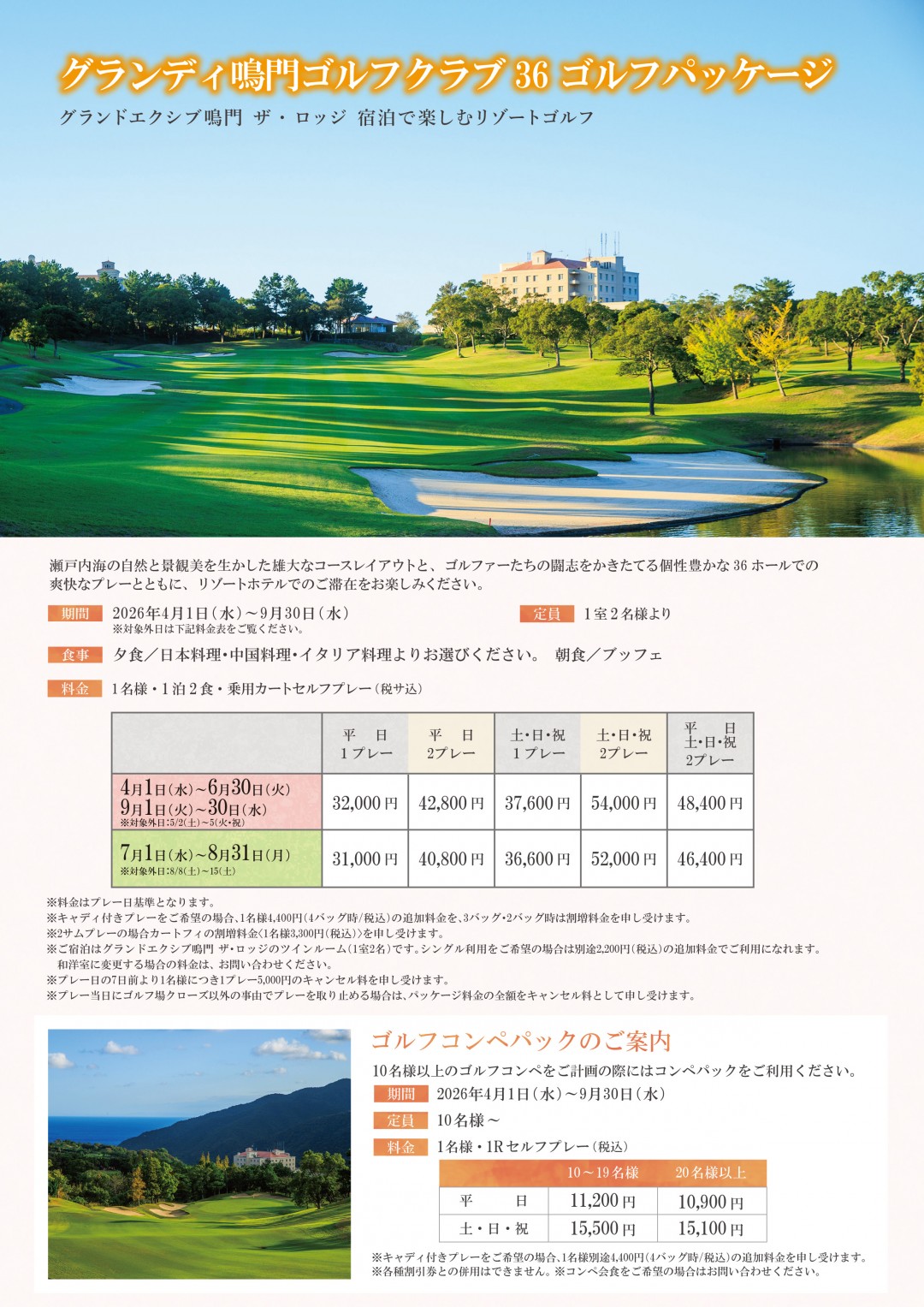 〇グランディ鳴門ゴルフパッケージ 1泊2食