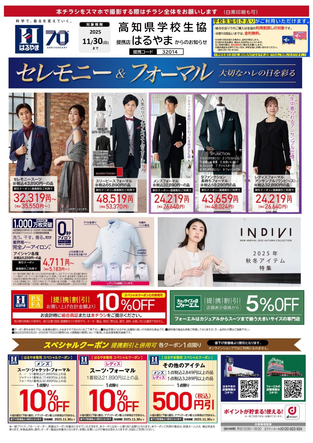 2025年4月1日より提携割引10%のみとなります。(直接決済・学校生協引き去り可)