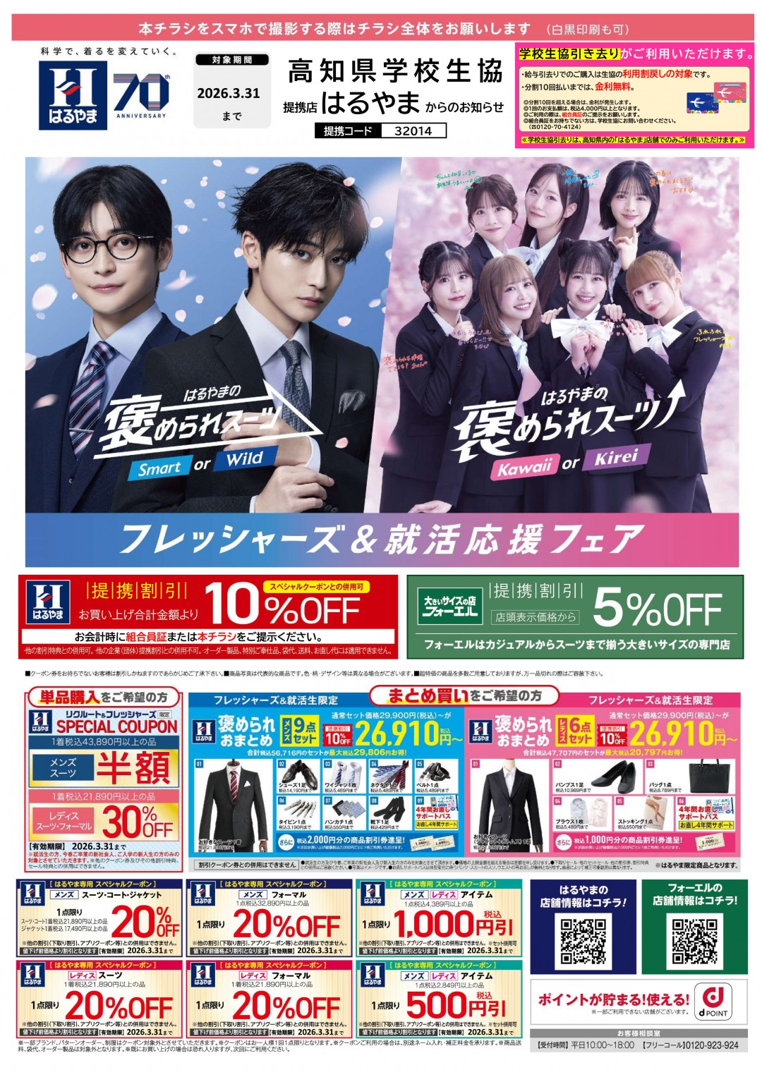 これまでご利用いただいていた学校生協引き去り時、5%OFF特典は2025年3月31日で終了したしました。